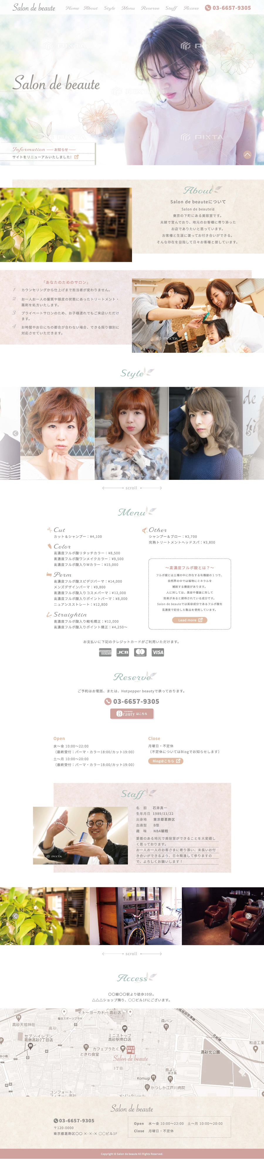 依頼内容、案件概要を踏まえて、企画書・提案書・ペルソナ設計等を確認しました。 今回のターゲットが私と年齢や条件が似ていたため、ユーザーをクライアントに求めているものがイメージしやすかったです。 美容室に来るお客様は髪を綺麗にしてもらう事はもちろん、子どもさんがいらっしゃるお客様は、敷居が高くないおしゃれな空間や、癒しやリラックスできる空間等を求めているのではと思い、デザインに落とし込みました。